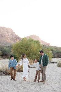 Anything neutral, light and/or NOT distracting works! In the summer, I love kiddos in bare feet if the terrain allows. As for babies who can't walk - if it's warm enough, let's see those cute toes! If it's cold out, neutral boots are adorable, or just about anything as long as it's not a distracting color. If mom is wearing a maxi dress, often times we won't be able to see those shoes so no pressure there. When all is said and done, I just want to make sure the shoes don't attract too much visual attention, we want that going to your faces!